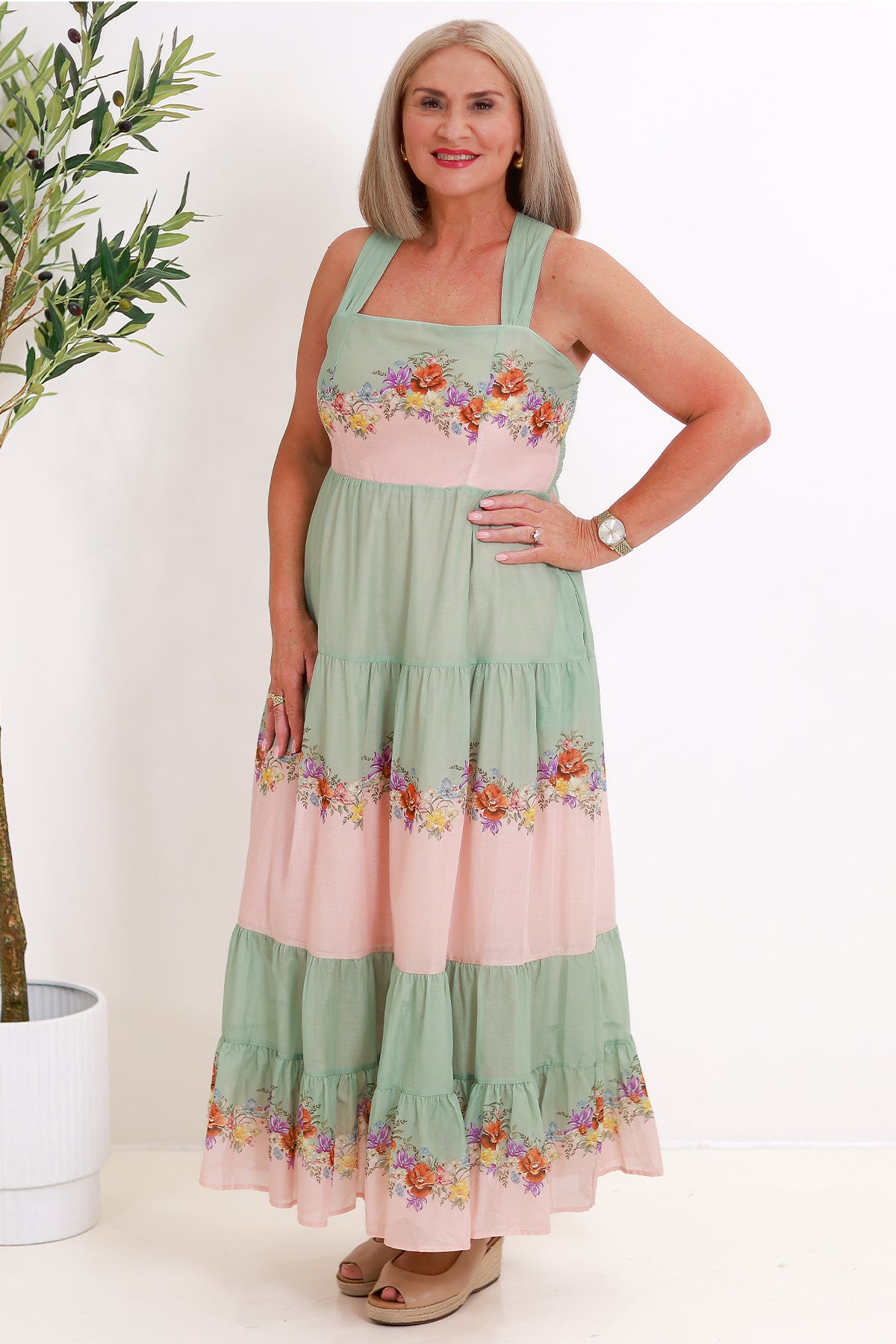 Effortless and feminine, the Hollyhock Maxi Dress is made for warm days and easy elegance. Crafted from soft, breathable fabric, it features a flowing silhouette, adjustable straps and a gently tiered skirt that moves beautifully with you.