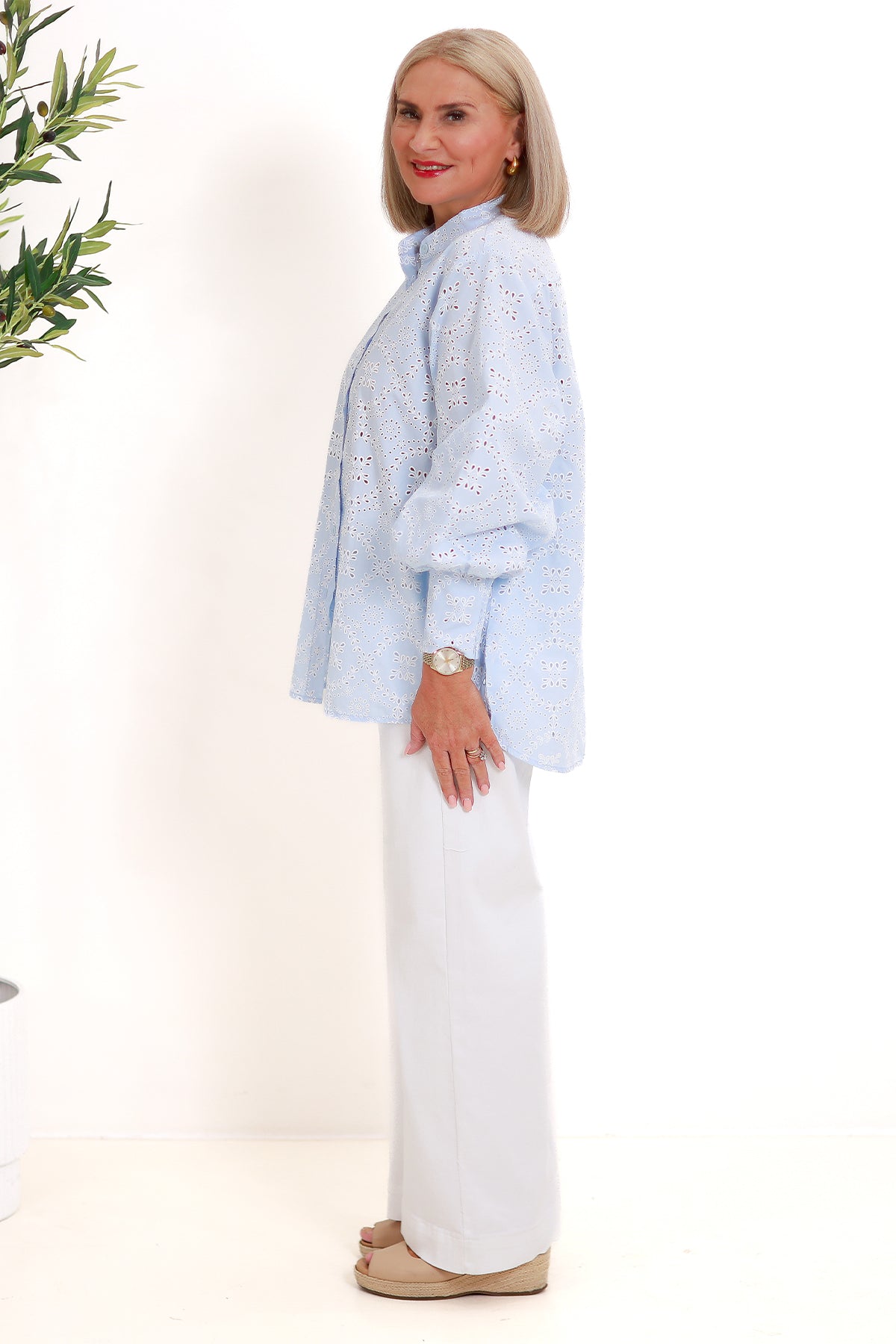 Crafted from breathable cotton, the Belamy Shirt drapes beautifully and keeps you cool. It has adaptable sleeves that can be worn to the elbow or full length, and we just love the comfy shirring cuff, it's so easy to adjust, no need to worry about fussy buttons.