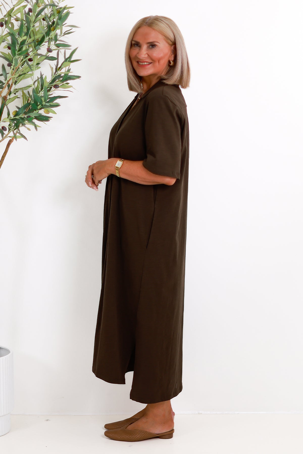 Our Giselle gives great coverage for your arms and tum, and is such a great length - not too short, and it has deep functional pockets ~ no scrimping here.