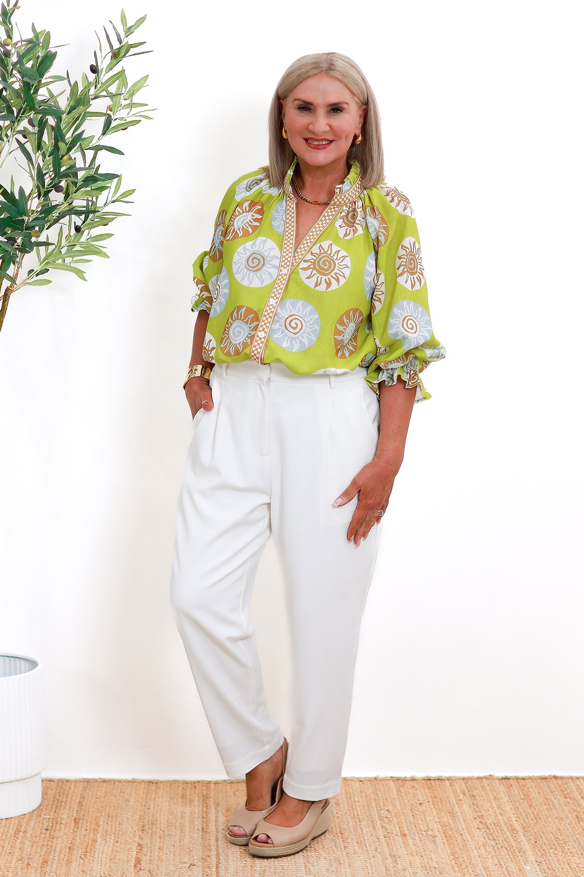 Our Palm Cove Shirt is an easy fit shirt, that is beautifully textured and made from breathable natural fibres. This style offers a flattering with the v neck, design and great coverage for the arms.