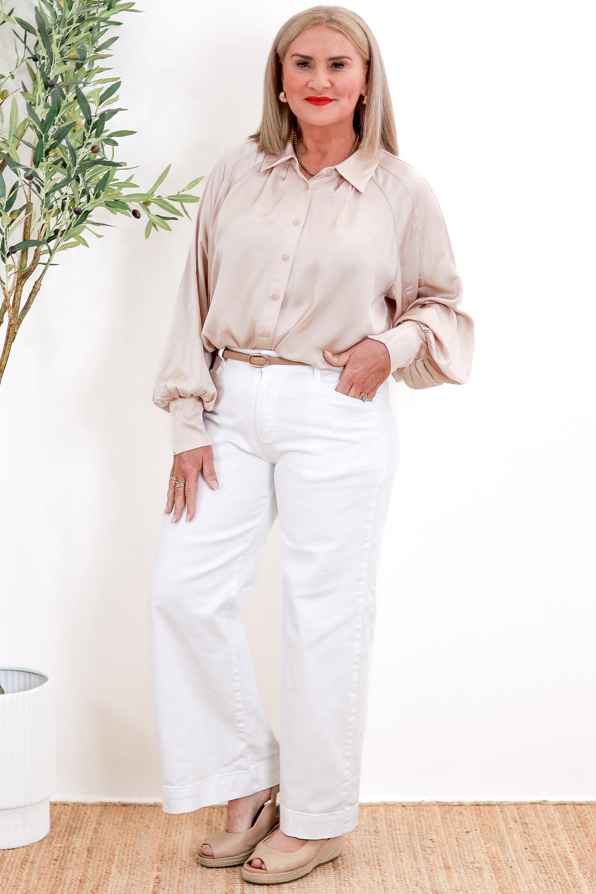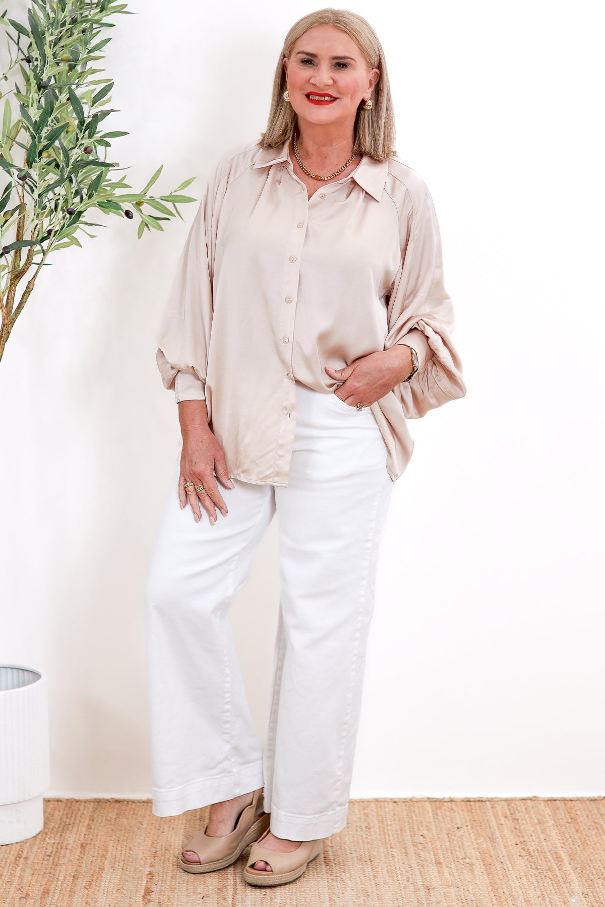 Pair it with your favourite denim or tailored pants for an elevated everyday look — or half-tuck into wide-leg trousers for a modern, confident silhouette.