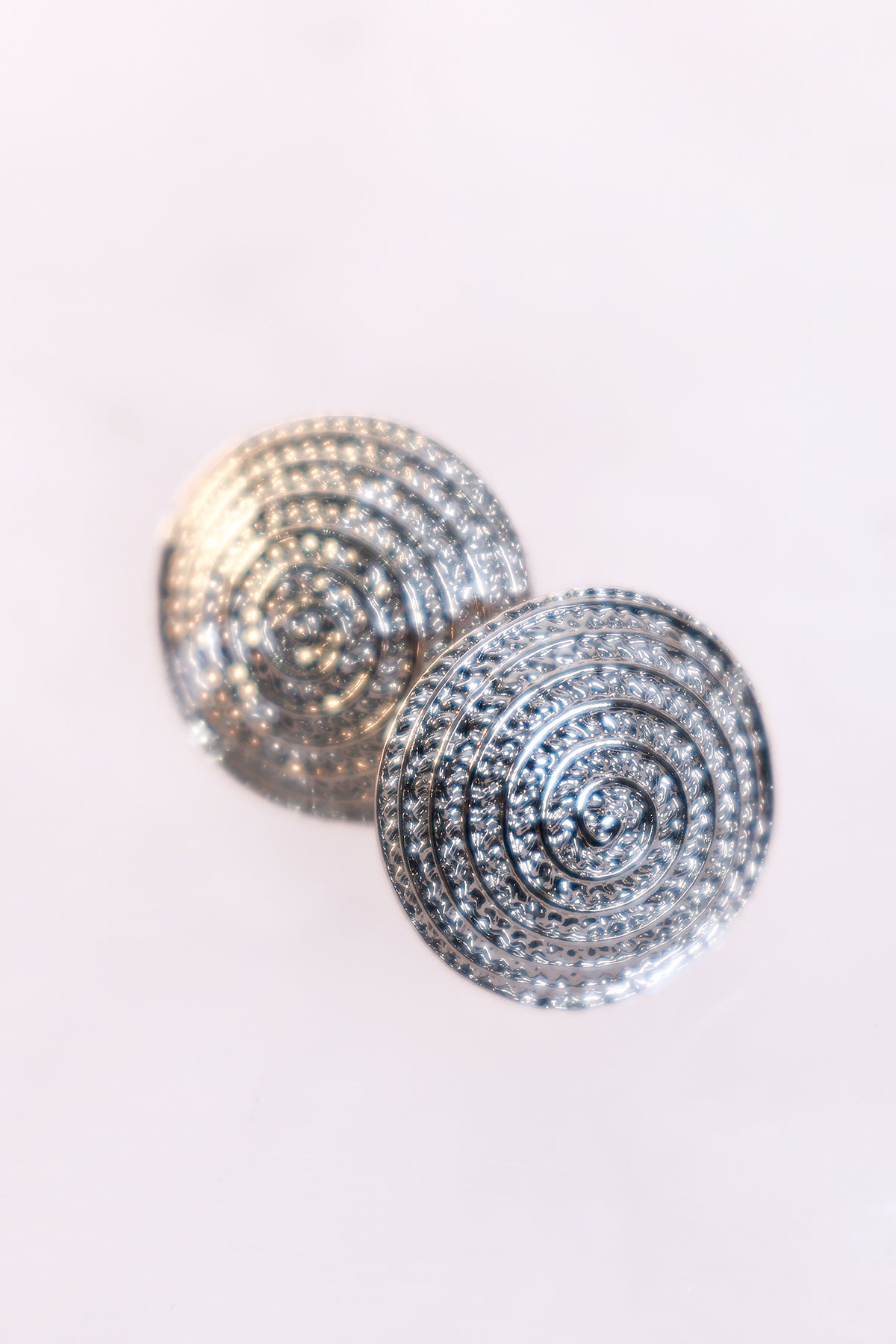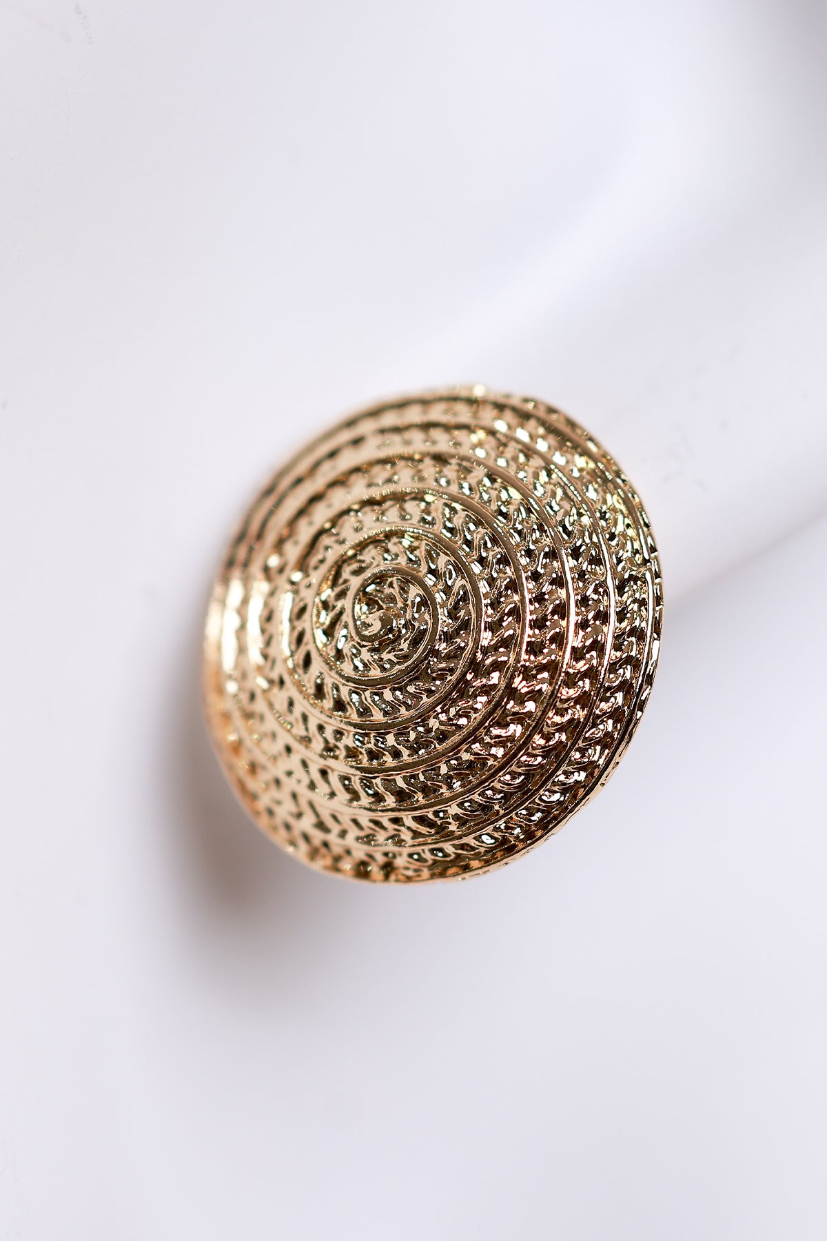 The Aman Round Earring is a modern classic with artisan-inspired detailing. Featuring a textured circular design in a polished gold-tone finish, this piece adds subtle sophistication and timeless charm to your look.